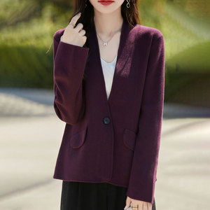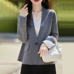 【厂家直供】纯色V领加厚开衫外套女秋季新款百搭针织毛衣外搭潮