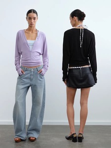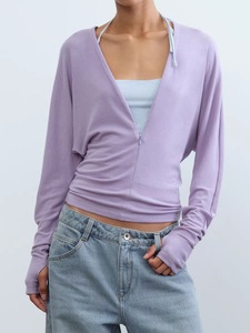 “78%莱赛尔天丝18%棉羊毛”V领隐形拉链蝙蝠袖针织打底长袖上衣