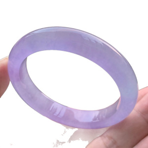 缅甸天然玉石翡翠手镯冰糯种紫罗兰飘花正圈平安镯年轻贵妃玉镯子