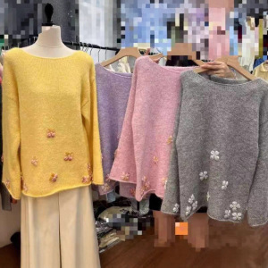 新款仙小香风女外套软糯刺绣洋气仿貂绒毛衣甜美开衫女外穿轻奢