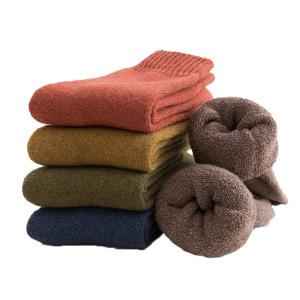 加厚袜子男款冬季纯棉袜子黑色保暖毛巾底中筒袜加绒毛圈冬天棉袜