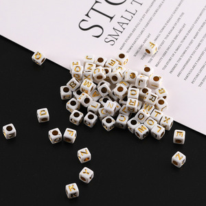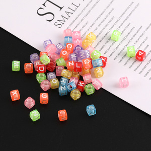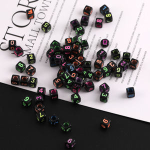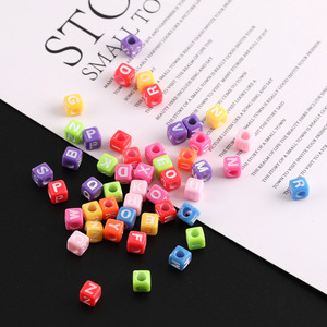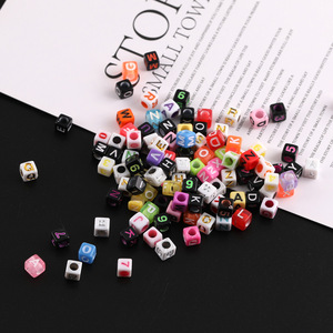 6mm彩色方形英文字母数字树脂散珠diy手工串珠手链隔珠材料配件