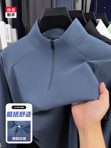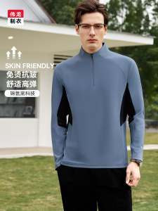 半拉运动长袖T恤男7A抗菌无痕抗皱打底体恤秋季新款高弹立领上衣