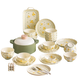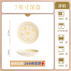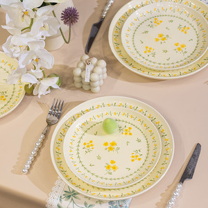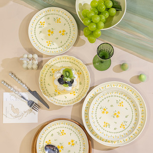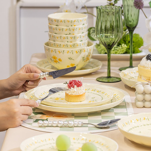 奶黄色碎花碗碟套装家用陶瓷餐具面碗汤碗米饭碗高温釉下彩伴手礼