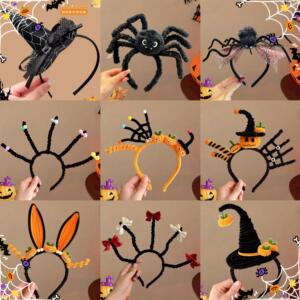 【成品】万圣节扭扭棒发箍儿童手工制作南瓜头蜘蛛拍照搞怪头饰女
