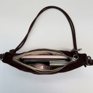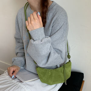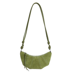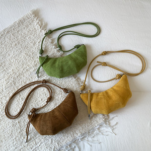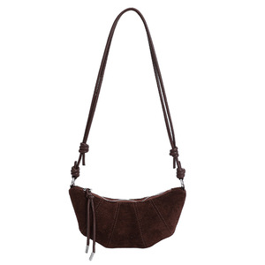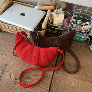 2025秋冬季流行车缝线饺子包女士斜挎包复古磨砂麂皮绒小号牛角包