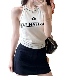 韩系撞色字母挂脖针织吊带背心女夏外穿修身高级感辣妹无袖上衣