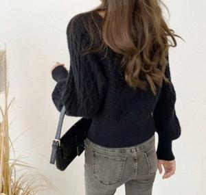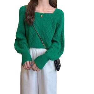 2025秋冬新款韩版宽松外穿方领毛衣女日韩复古麻花收腰显瘦针织衫