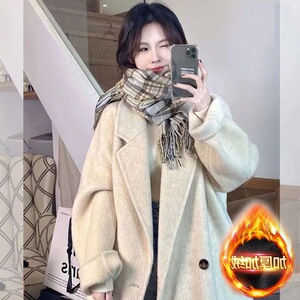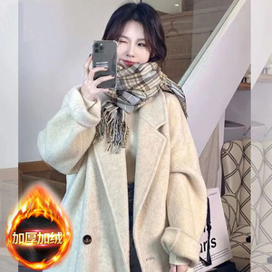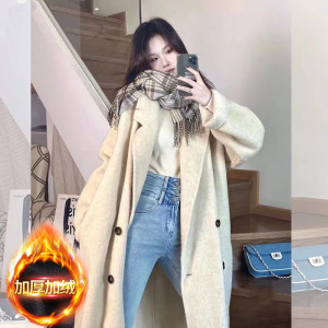 (350克加夹棉加里)外穿大码呢子大衣小众中长款加厚夹棉毛呢外