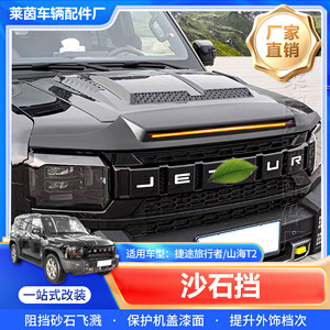 适用捷途旅行者沙石挡前机盖改装带灯砂石挡LED流光灯外观配件