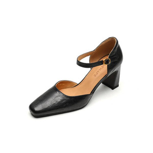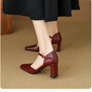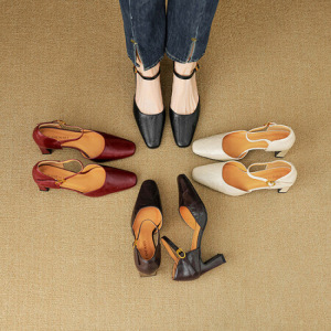超高跟一字扣带玛丽珍鞋女法式复古包头中空凉鞋女港风粗跟羊皮鞋