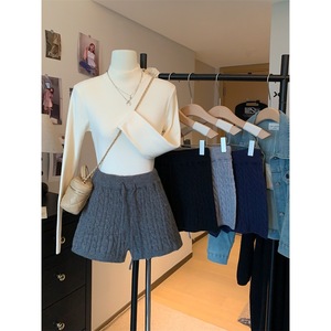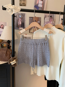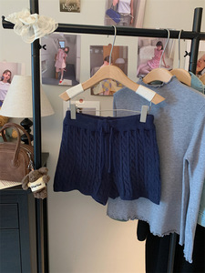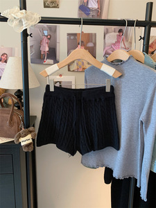 实拍~美式基础百搭纯色针织短裤女秋季新款高腰抽绳百搭短裤87475
