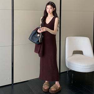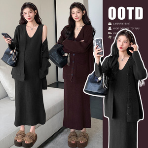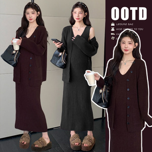 实拍现货~2025秋冬慵懒套装韩版时尚宽松背心裙+开衫加厚两件套