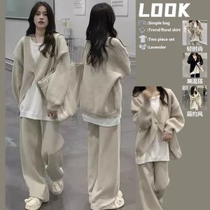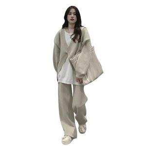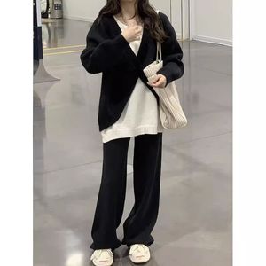 微胖女生穿搭套装女秋冬季2025新款设计感毛衣搭阔腿裤两件套