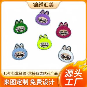 拉布布labubu电脑绣花毛巾绣刺绣布贴服装辅料免缝自粘胶补丁贴