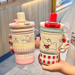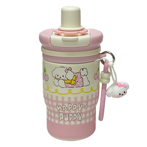 可爱泡芙一杯双饮小狗保温杯坚固提环方便携带带有独立公仔饮水杯