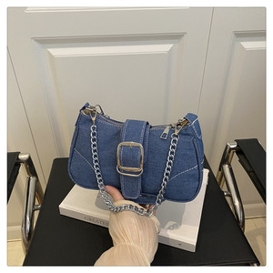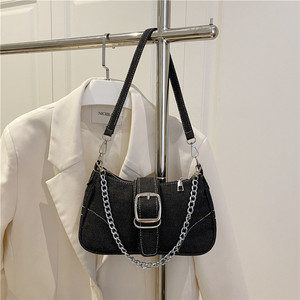 2025简约帆布牛仔质感时尚大容量休闲链条休闲通勤单肩腋下包包女