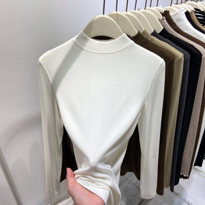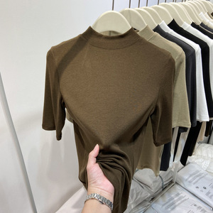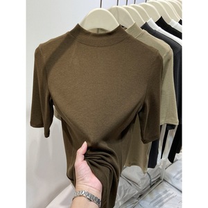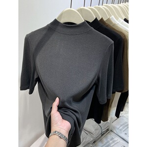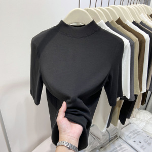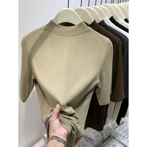 半高领五分袖打底衫t恤女2025早秋新款修身显瘦内搭中袖立领上衣