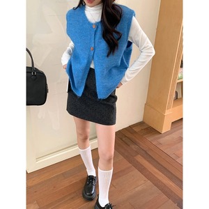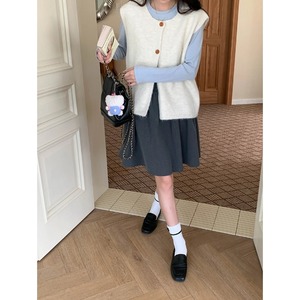 3th Morning 软糯温柔风 简约韩系两粒扣针织马甲叠穿ZY3325