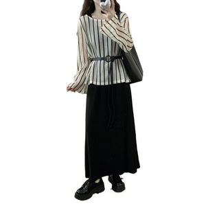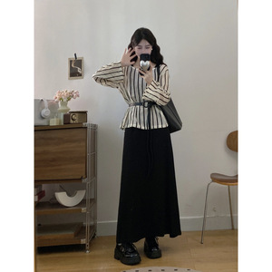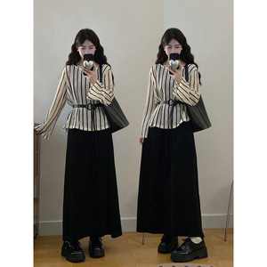 2025大码女装胖mm秋季配搭一整套宽松长袖上衣背带裙遮肚子两件套