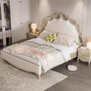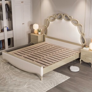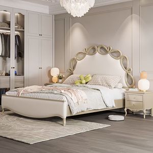 美式轻奢实木床1米8主卧双人床蝴蝶结雕花公主大床法式奶油风婚床