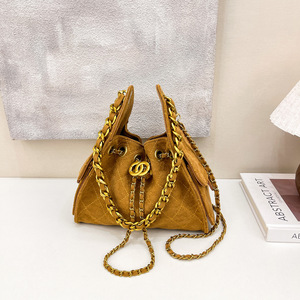 外贸跨境2025麂皮绒菱格链条水桶包百搭斜挎包大容量单肩腋下包女