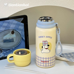 水杯2025大容量保温杯便携可爱吸管杯茶水分离女生外出高颜值杯子