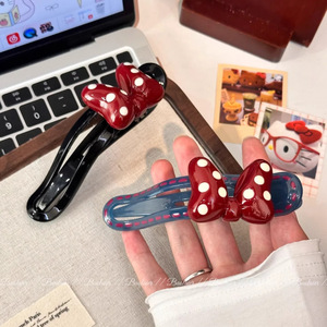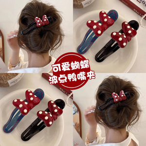 可爱波点蝴蝶结鸭嘴夹发夹女后脑勺2025新款盘发一字抓夹发卡头饰