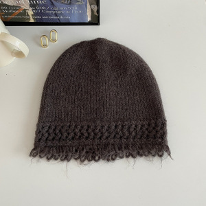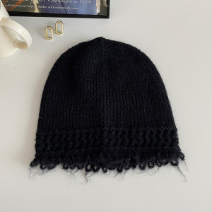 批发韩国25新款时尚流苏边针织帽女百搭显脸小毛线冷帽韩系高级感