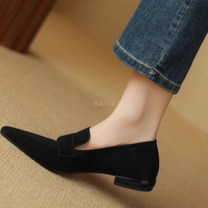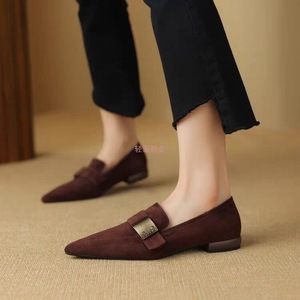 法式单鞋女2025春秋新款复古尖头平底磨砂深口乐福小皮鞋瓢鞋女潮