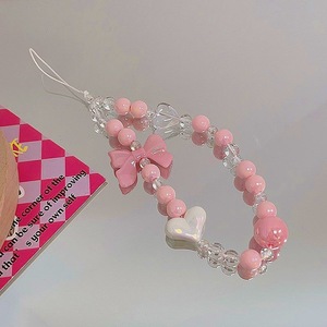 透粉色果冻蝴蝶结手机链手机壳串珠挂饰挂件防摔链条手机挂绳女