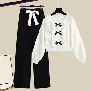 秋季套装女2025阔腿裤新款显瘦潮毛衣减龄两件套针织收腰初秋女装