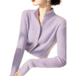 韩版感半高领内搭毛衣开衫女2025秋冬新款纯色温柔风修身针织外套
