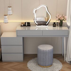 梳妆台斗柜一体家用卧室现代简约小户型可伸缩奶油风化妆桌收纳柜
