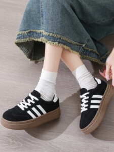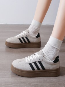 啄木鸟圆头厚底板鞋女2025秋新款覆古小个子内增高德训鞋运动百搭