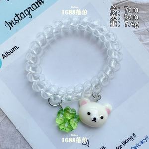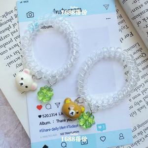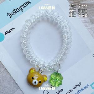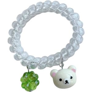 可爱轻松熊四叶草吊坠电话线发圈甜美百搭小清新扎发皮筋高马尾女