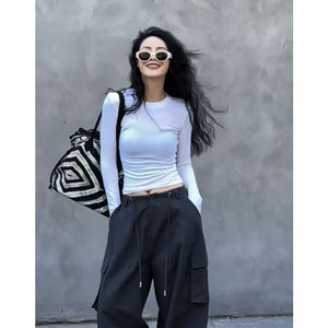 辣妹紧身长袖t恤女秋高级感修身短款针织上衣内搭红色打底衫小衫