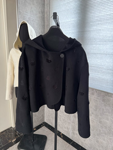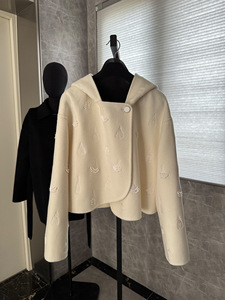 高版本H家2025秋冬新款刺绣双面呢短款大衣山羊绒外套爱马HES女仕