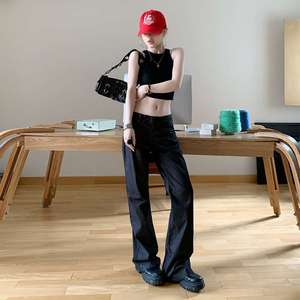 批发复古自然美式直筒低腰西装博主百搭休闲裤常规加长