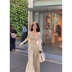 ACHI大也池白色带胸垫扭结挂脖吊带背心女设计感无袖褶皱收腰上衣