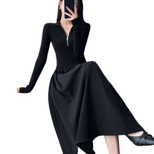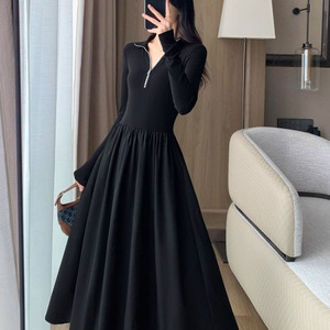 温柔风收腰显瘦长袖连衣裙秋冬新款气质拉链打底裙法式高级大摆裙