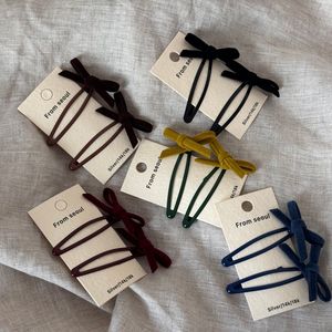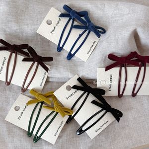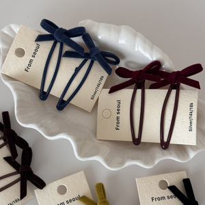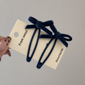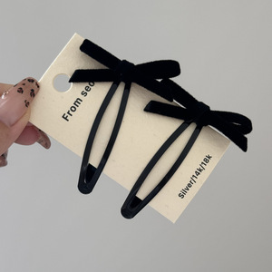 一对装纯色丝绒蝴蝶结发夹女甜美侧边发刘海碎发BB夹夹子发饰新款
