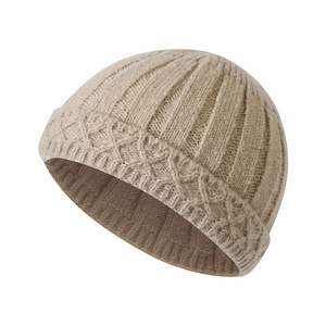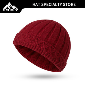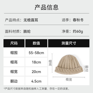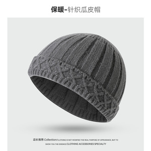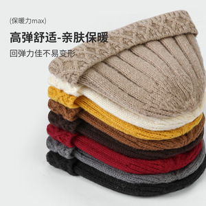 秋冬针织瓜皮帽加厚纯色翻檐套头毛线地主帽休闲保暖防寒包头冷帽