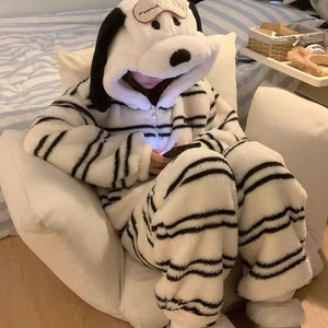 可爱少女卡通小狗连帽珊瑚绒睡衣套装女冬季新款加厚大码家居服冬