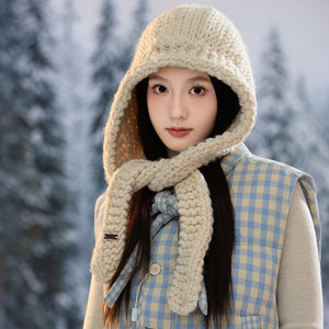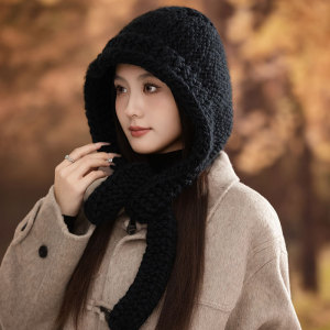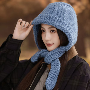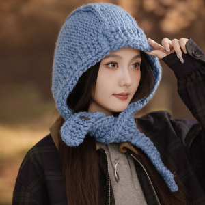 时尚百搭手工针织护耳帽子女生秋冬季套头毛线帽户外休闲雷锋帽潮