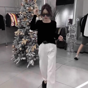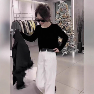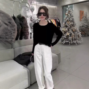 欧洲站时尚减龄小衫女2025春季新款纯色网纱蕾丝拼接丝绒宽松上衣