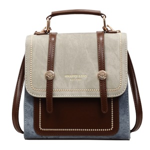 跨境复古pu双肩包包女2025新款学生休闲多功能书包凹造型背包外贸