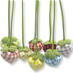 新款格子草莓儿童可爱发绳头绳配饰 手工布艺发夹箱包diy饰品配件