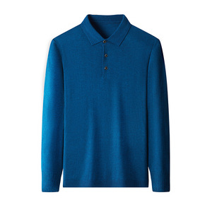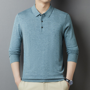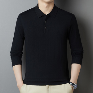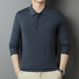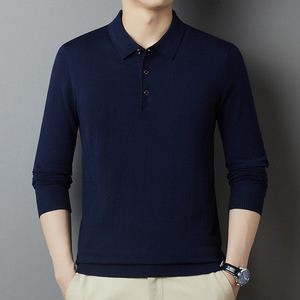 男士纯色长袖T恤男中年商务绅士翻领宽松打底衫polo毛衫商务休闲