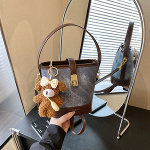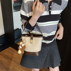 复古休闲质感撞色水桶包2025秋冬新款时尚百搭简约手提单肩斜挎包